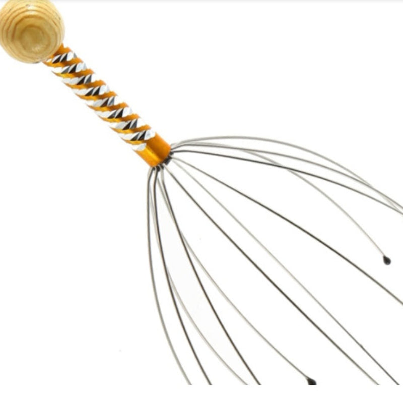 Featuring flexible stainless steel massage tentacles and a smooth wooden handle, this massager easily reaches deep into the hair for full scalp coverage. The octopus-style design creates a soothing tingling sensation that refreshes the mind, eases stress, and supports scalp health. Regular use may help relax the brain, strengthen hair roots, and enhance overall comfort and well-being.