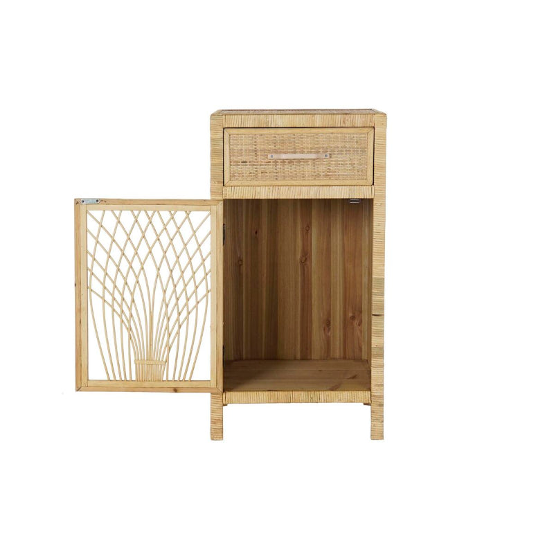 The Bali-inspired design of this nightstand captures the essence of natural living while offering practical storage solutions. Featuring one drawer and one door, it provides ample space to store your nighttime essentials or small personal items. Its compact size makes it ideal for smaller spaces, while the detailed craftsmanship ensures it stands out as a statement décor piece.