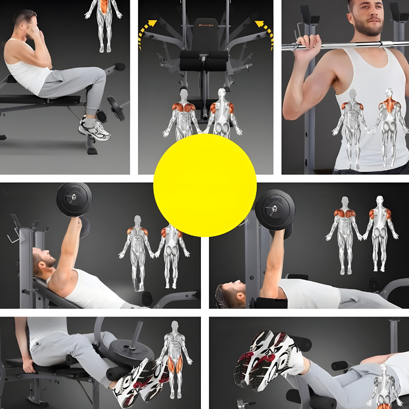 Experience the ultimate all-in-one training solution with the Hardcore Workout Weight Bench. Built for those who take their fitness seriously, this versatile bench lets you perform a full range of exercises without needing multiple machines. From military press and bench press to chest flys, leg curls, and more, you can seamlessly transition between movements and maximize your workout time. Designed with safety and performance in mind, it ensures optimal stability and balance throughout even the most intense sessions.