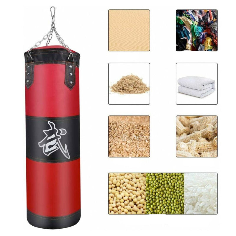 Constructed from high-grade Oxford cloth with PU faux leather and filled with sturdy elastic sponge, this bag is built to withstand intense workouts. Strong stitching and secure buckles ensure the bag stays intact during repeated use. The included metal chain and hook make it easy to hang, providing a stable and reliable training setup.