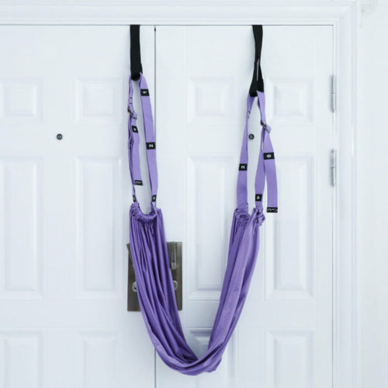 This aerial stretching swing doesn’t require permanent installation. Simply slip the two foam wheels over a door and shut it to secure in place—no hardware needed. Its portability allows you to move it between rooms or even take it along while traveling. The included extra bands enhance the effectiveness of your stretches and exercises, providing versatile options for deepening your yoga practice.