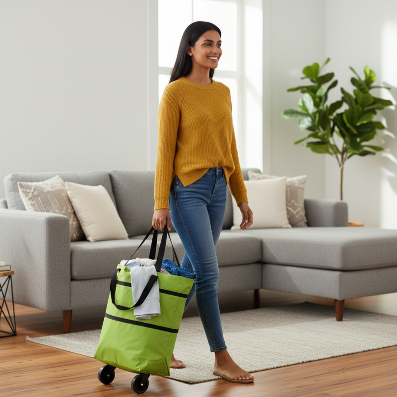 Made from high-quality, lightweight fabric, this folding bag is both strong and long-lasting. The reinforced seams and sturdy handles provide durability and support, allowing you to carry groceries, accessories, or personal items comfortably. Its flexible design ensures the bag maintains its shape while in use.