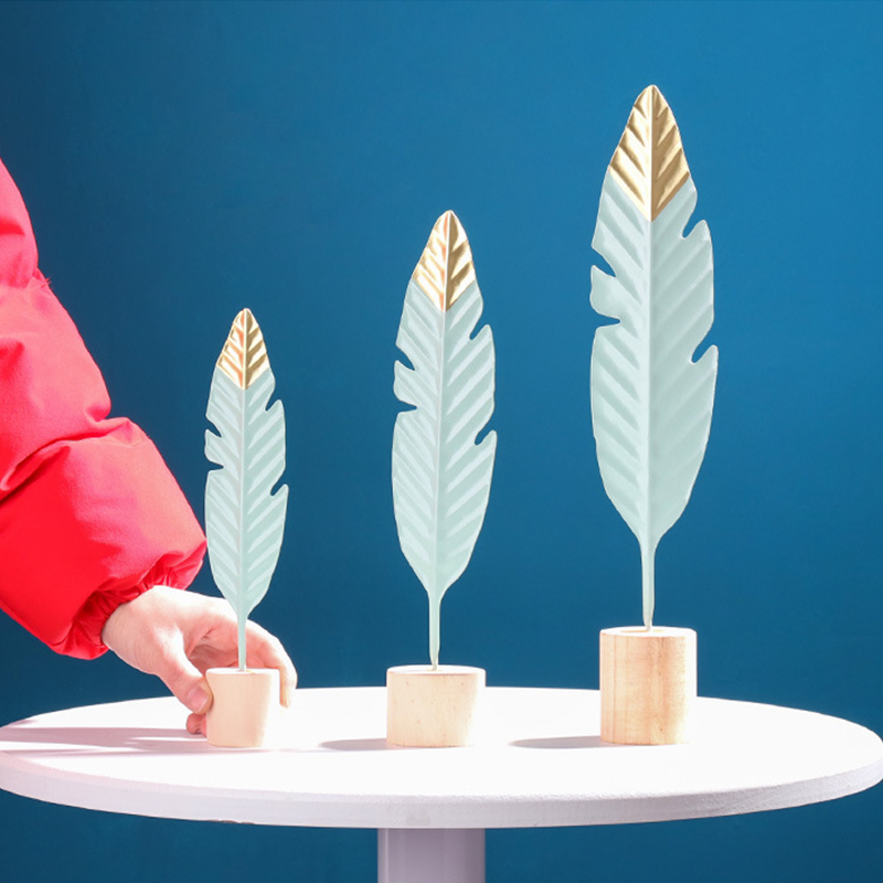 Crafted from high-quality iron with a sturdy wooden base, these ornaments are built to last while providing a visually appealing contrast between metallic shine and natural textures. Every detail—from the leaf contours to the smooth finish—reflects careful craftsmanship, making each piece a stylish and durable décor statement.