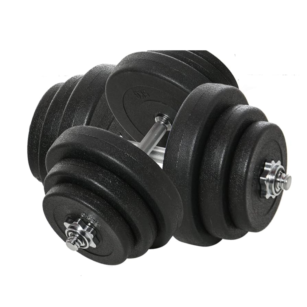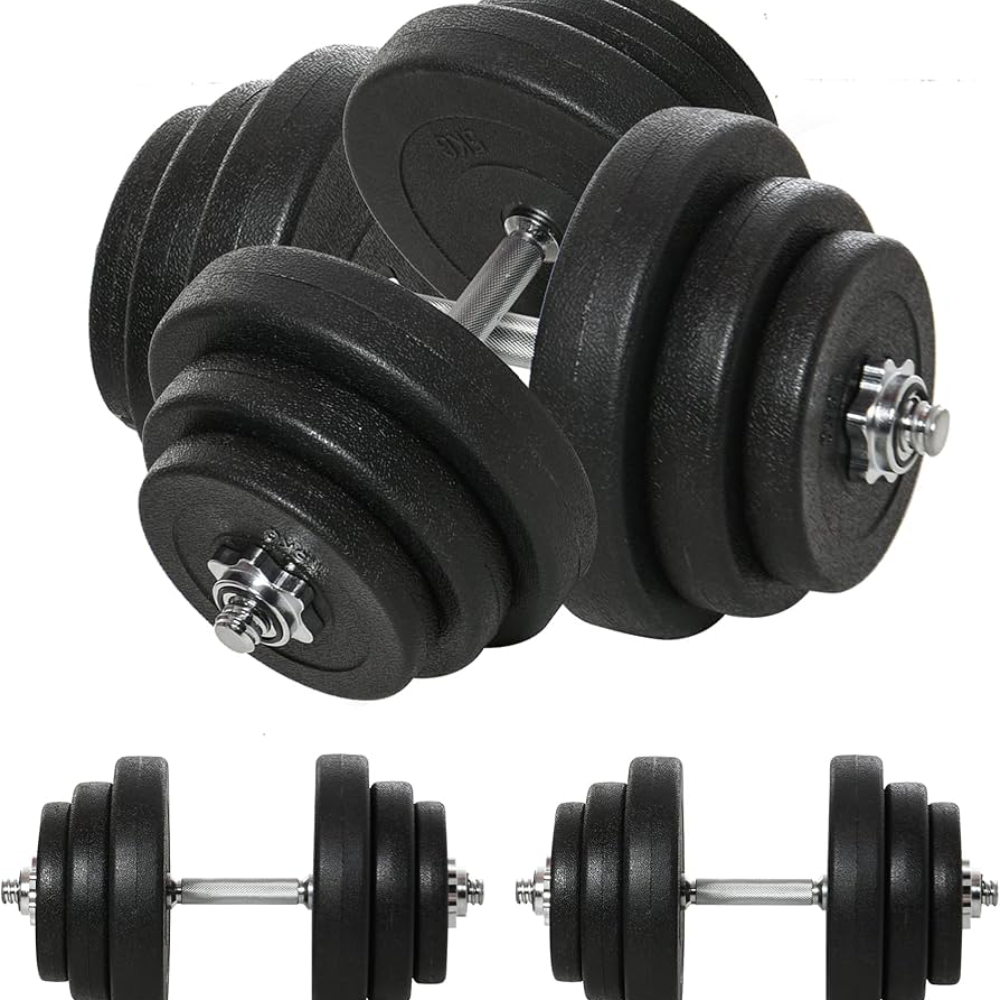 This set is made from high-quality steel and plastic for durability and long-lasting use, with a non-slip grip on the handles to ensure comfort and safety during exercises. You can adjust each dumbbell’s weight by adding or removing plates, making it suitable for a wide range of workouts from light toning to heavier strength training.
